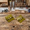 Tiene 6 orificios para tornillos, 3 por cada hoja dispuestos a 3cm uno del otro