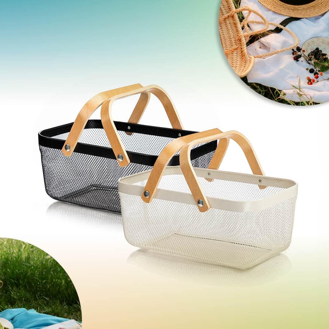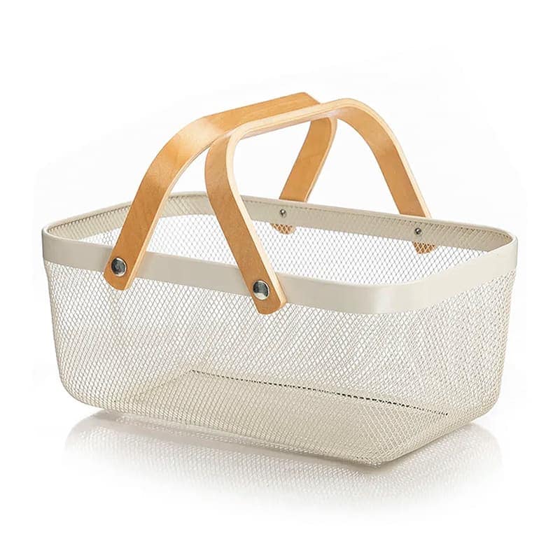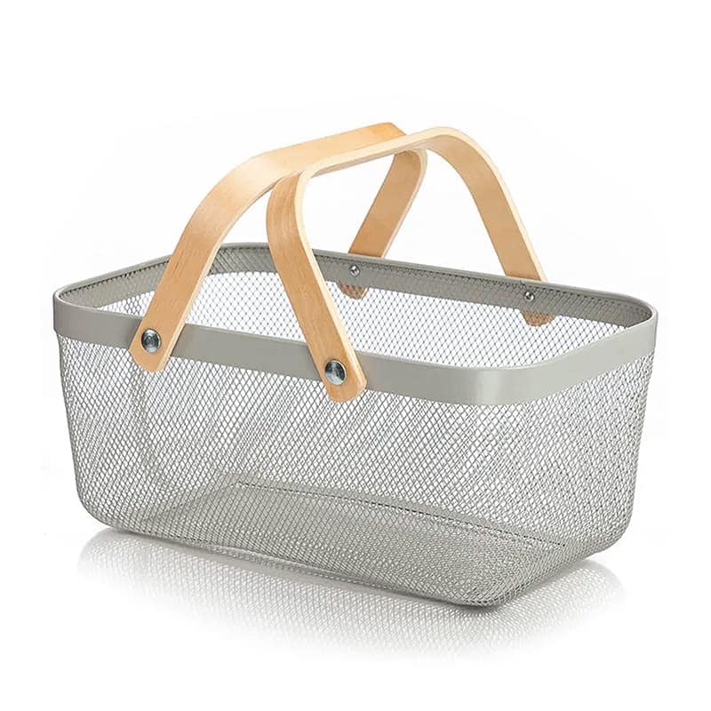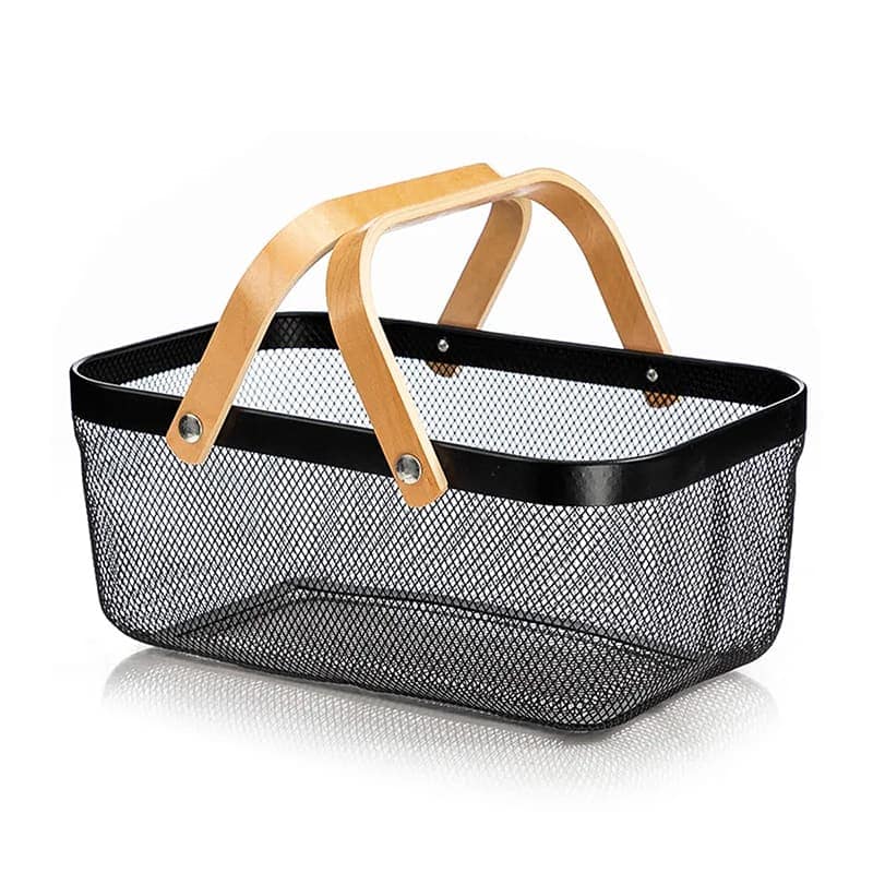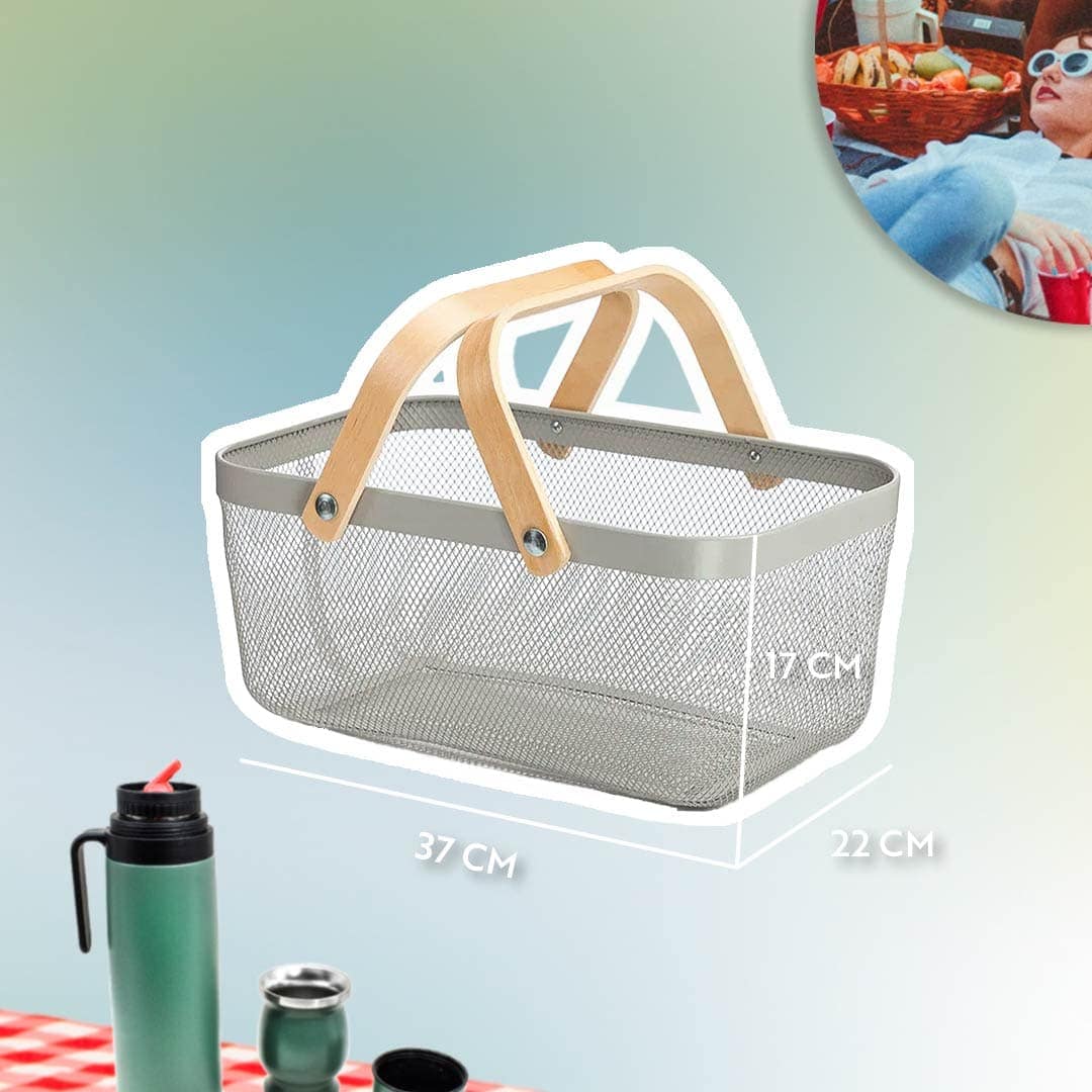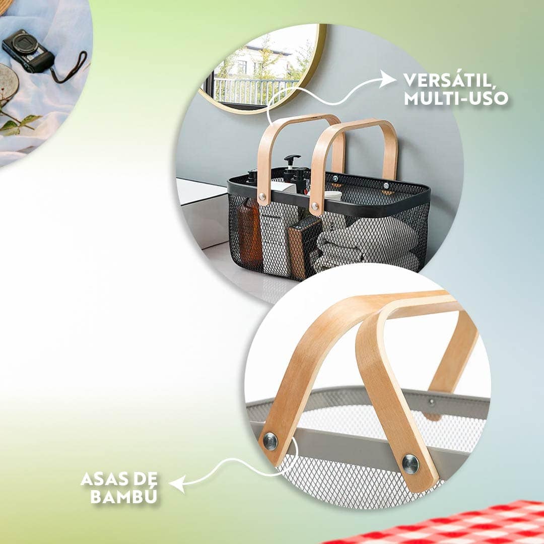 CANASTA METALICA CON 2 ASAS DE BAMBU