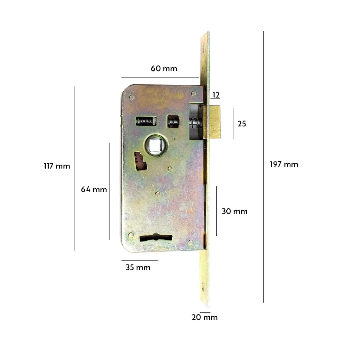 Medida entre orificio de pestillo y orificio donde va la llave: 6,5cm
